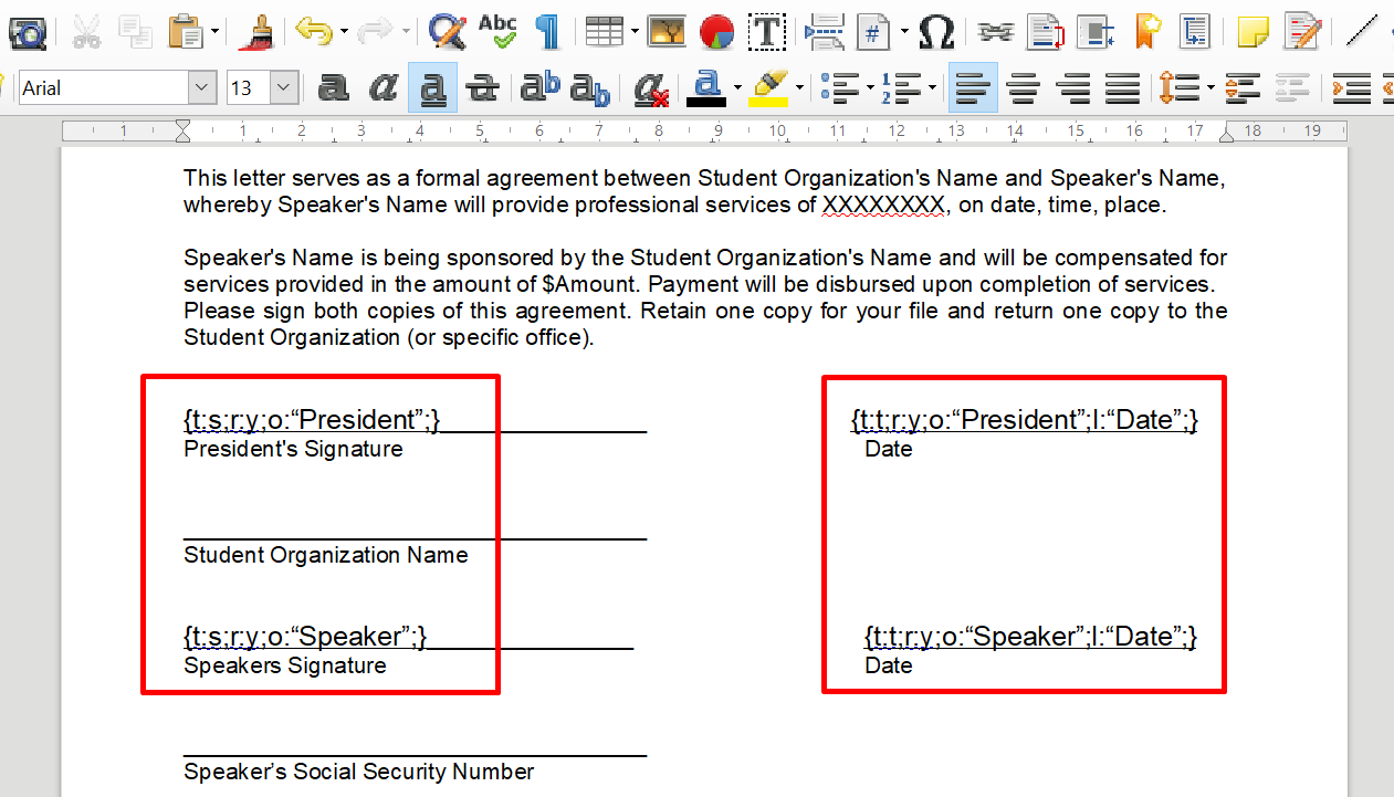 The text tags being used on the second ‘Sign Here’ line are the following: